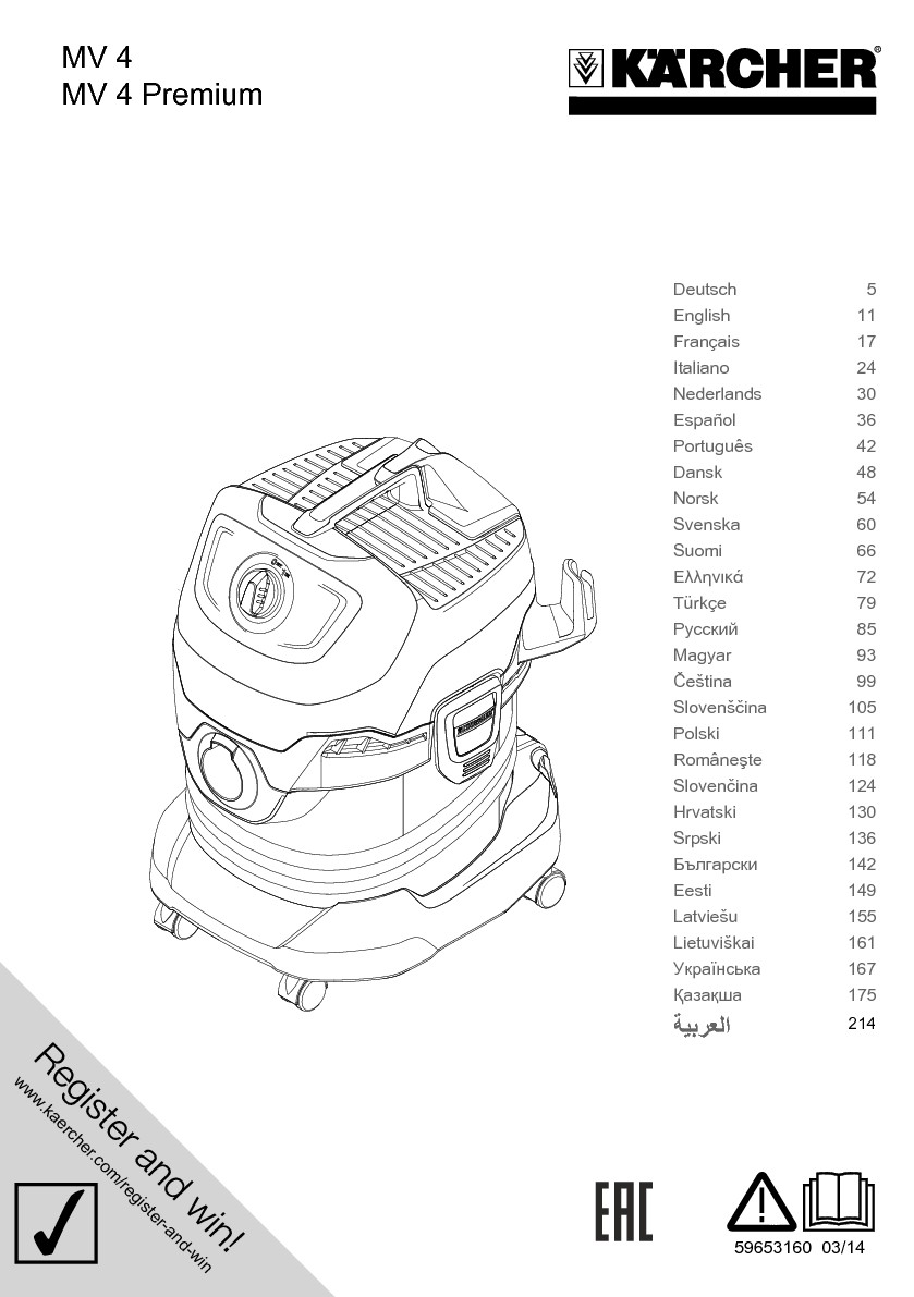 Multifunkční vysavač WD 4 Premium. Super sací síla a energetická úspora. Robustní nádrž z ušlechtilé oceli o objemu 20 l, plochý skládaný filtr v odnímatelné kazetě, parkovací poloha.
