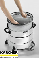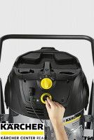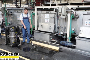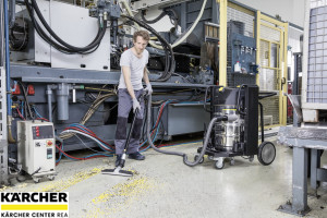 Kompaktní průmyslový vysavač k čištění výrobních prostor a strojů. Snadný pohyb díky velkým kolům a brzdným kolečkům, vhodný pro trvalé používání. Bezkartáčové motory EC pro trvalý provoz. Automatické čištění filtru TACT zajišťuje dlouhé pracovní