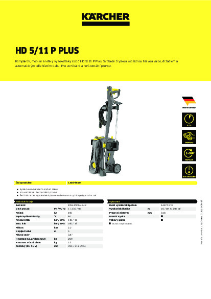 DomůVysokotlaké čističe KärcherVysokotlaké čističe bez ohřevuNa 230 VKärcher vysokotlaký čistič HD 5/11 P Plus