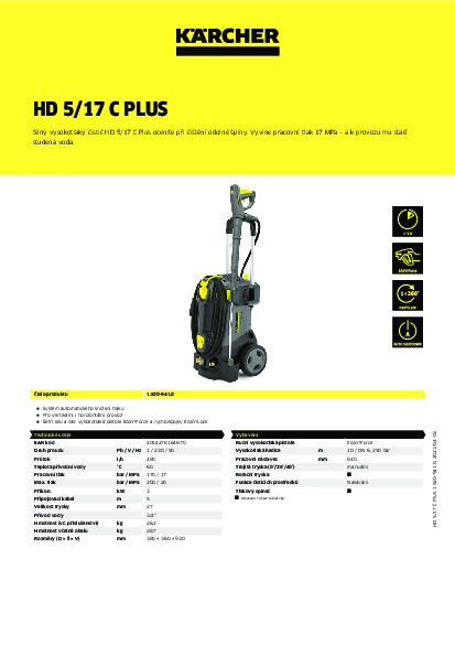 DomůVysokotlaké čističe KärcherVysokotlaké čističe bez ohřevuNa 230 VKärcher vysokotlaký čistič HD 5/17 C Plus