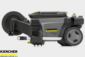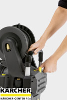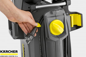 - Uložení příslušenství - Šroubení (M 18 x 1,5) k uložení čističe ploch přímo na stroji. Praktické přihrádky na trysky pro trojnásobnou trysku a rotační trysku. Gumový pásek pro upevnění vysokotlaké hadice. Integrovaný buben na navíjení hadice s 15 m vysokotlakou hadicí. Pro velký akční rádius a jednoduché uložení obratem ruky (varianty CX).