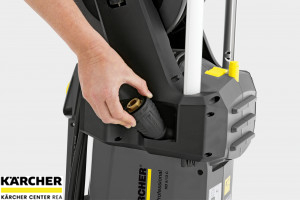 - Uložení příslušenství: Promyšlené řešení detailů, jako např. přihrádka na trysky, zajišťuje připravenost k použití při jakékoli čisticí situaci. Integrovaný buben na navíjení hadice s 15 m vysokotlakou hadicí. Pro velký akční rádius a jednoduché uložení obratem ruky (varianty CX).