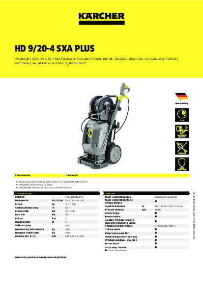 Vysokotlaký čistič bez ohřevu HD 9/20-4 SXA Plus. Vybavený materiály nejvyšší kvality, bubnem pro automatické navíjení hadice a rotační tryskou Vibrasoft pro přesvědčivý výkon a komfort.
