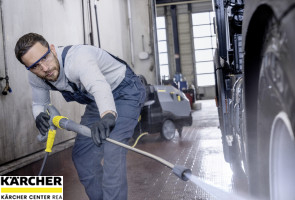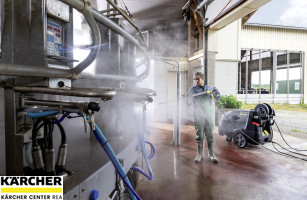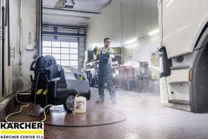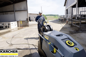 Ergonomický, snadno ovladatelný: vysokotlaký čistič s ohřevem a s automatickým navíjením VT hadice, úsporným režimem eco!efficiency a 4pólovým vodou chlazeným elektromotorem.