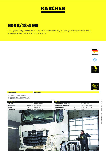 3-fázový vysokotlaký čistič HDS 8 / 18-4 MX - vstupní model střední třídy se 4-pólovým elektrickým motorem. Včetně hadicového navijáku a 20m dlouhé vysokotlaké hadice.
