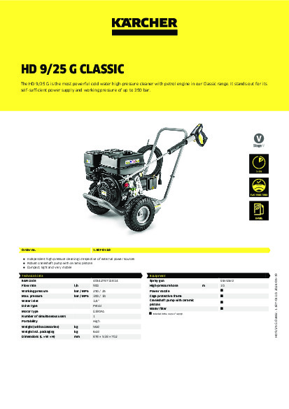 DomůVysokotlaké čističe KärcherVysokotlaké čističe bez ohřevuNa benzín/dieselVysokotlaký čistič KÄRCHER HD 9/25 G Classic