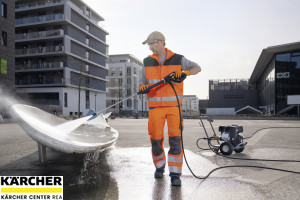 Staveniště, veřejné parky a další, často vzdálená místa použití: Všude tam, kde nejsou k dispozici žádné externí zdroje energie pro vaše náročné úklidové úkoly, je náš studenovodní vysokotlaký čistič HD 9/25 G Classic se zážehovým motorem EU STAGE V skvělá volba. S hodinovým objemem vody 900 litrů, pracovním tlakem 250 barů a robustním čerpadlem klikové hřídele zvládne stroj spolehlivě i náročnější úkoly čištění. HD 9/25 G Classic je díky své ergonomické rukojeti, praktickému uložení příslušenství, kompaktním rozměrům a kolům odolným proti propíchnutí extrémně uživatelsky přívětivý, mobilní a snadno přenosný. Stroj také zaujme snadno přístupnými součástmi, které jsou účinně chráněny velkým vodním filtrem a tepelným a pojistným ventilem. Aby se zabránilo poškození v důsledku vnějších vlivů, je stroj vybaven vysoce robustním ocelovým rámem.