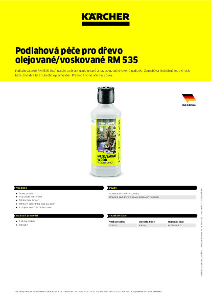 DomůDomácí technikaČistící prostředkyNa dřevoKärcher Ošetřovací prostředek na dřevěné naolejované/voskované podlahy RM 535 (0,5 l)