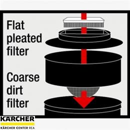 - Filtrační systém z robustního plochého skladaného filtru a z kovového filtru na hrubé nečistoty - Pro konstatní a dlouhotrvající sací výkon.