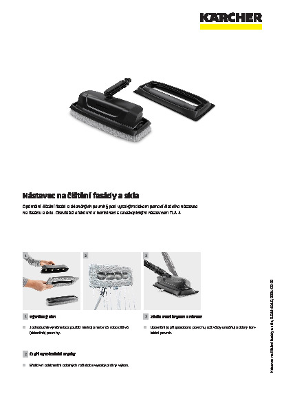 Optimální čištění fasád a skleněných povrch§ pod vysokým tlakem pomocí čisticího nástavce na fasádu a sklo. Obzvláště efektivní v kombinaci s teleskopickým nástavcem TLA 4.