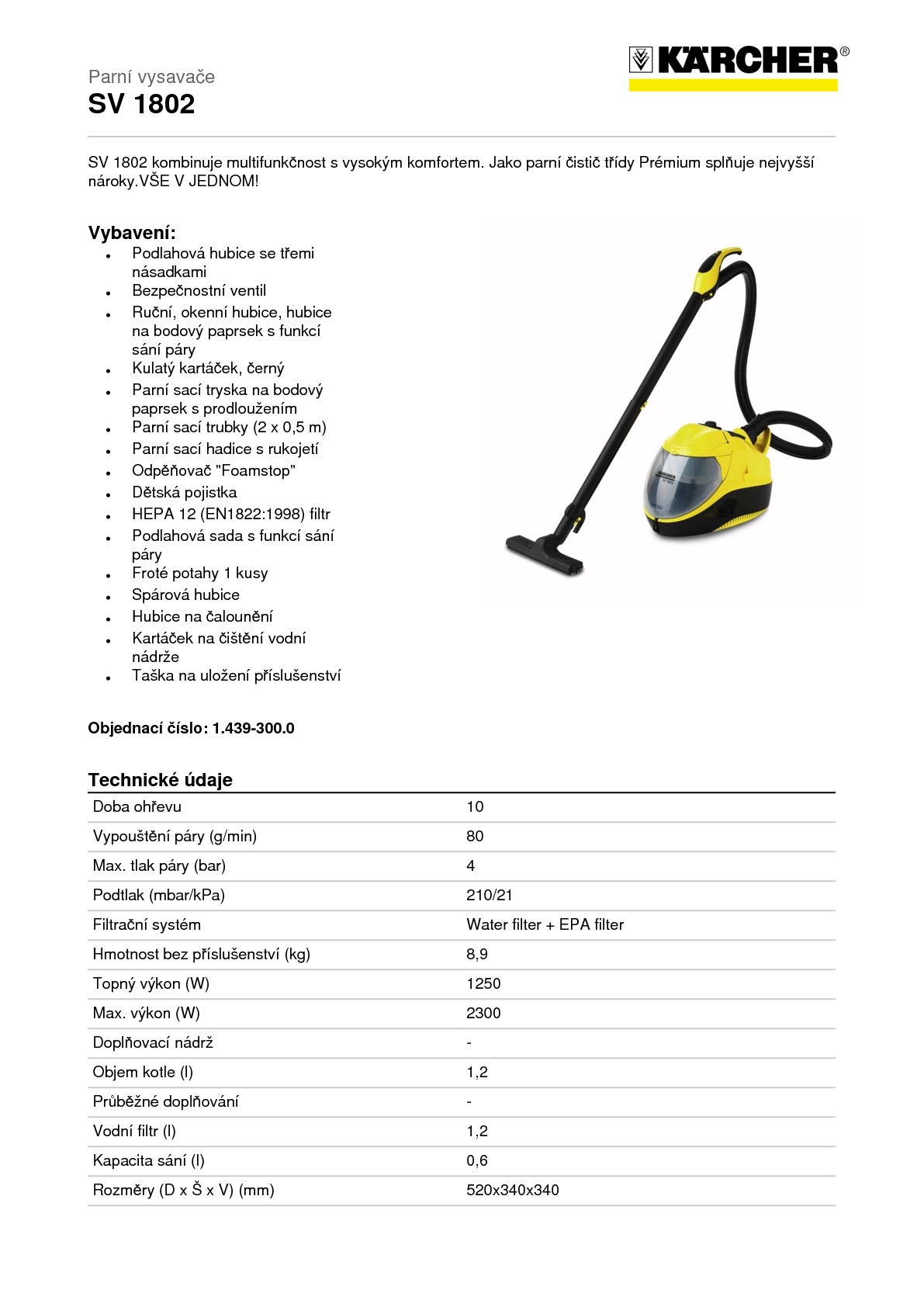 Parní vysavače Kärcher SV 1802 spojují výhody parních čističů a vysavačů pro vysávání suchých nečistot. Vysají např. drobečky na zemi a podlahu zároveň vytřou. S těmito všeuměly a vhodným příslušenstvím zvládne každý udržovat svoji domácnost v čistotě - snadno, pohodlně, rychle a bez chemie.