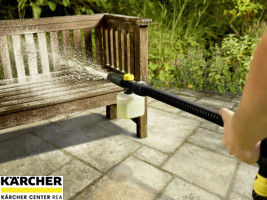 Občas je pro docílení skutečné čistoty zapotřebí více než jen voda. Pěnovací tryskou FJ 24 pro čističe Cleaner firmy Kärcher zvládnete tento úkol bez námahy. Jednoduše naplníte nádrž o objemu 0,3 litru čisticím prostředkem Home & Garden, nasadíte pěnovací trysku na prodlužovací nástavec a jde se na věc: Díky důkladné pěně a v případě potřeby otočné úrovni tryskání bude vše hravě čisté. Přidávání čisticího prostředku nastavíte pohodlně žlutým tlačítkem na trysce. A díky osvědčenému systému Quick Connect uvolníte spojení mezi pěnovací tryskou a prodlužovacím nástavcem jednou rukou, abyste mohli vyměnit příslušenství . Pěnovací tryska FJ 24 je vhodná pro čističe Kärcher (KHB 5 Battery a nástupce), ne ale pro vysokotlaké čističe tříd K 2 až K 7.