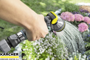 Kovová multifunkční postřikovací pistole Premium z vysoce kvalitních kovových prvků je obzvláště robustní a proto má také velmi dlouhou životnost. Její 4 obrysy postřiku - sprcha, horizontální plochý paprsek, perlový paprsek a jemné mlžení - z ní dělají skutečného multitalenta v oblasti zavlažování nejrůznějších rostlin s individuálními požadavky. Jemné mlžení je nejvhodnější pro šetrné zavlažování křehkých rostlin, zatímco květinové a rostlinové záhony se v ideálním případě zavlažují sprchou. Lehce znečištěné plochy zase snadno vyčistíte s horizontálním plochým paprskem. Perličkový paprsek umožňuje vysoký průtok vody, jenž lze dobře využít např. k plnění nádrží. Nově vyvinutá membránová technologie na postřikovací hlavě od společnosti Kärcher se postará o ochranu proti kapající vodě. Rovněž výhradně u společnosti Kärcher naleznete otočnou rukojeť, se kterou nastavíte aretovatelný spouštěč dopředu nebo dozadu a která sedí příjemně v dlani a získá si Vás tak svým individuálním uživatelským komfortem. Ostatně: Postřikovače od společnosti Kärcher jsou kompatibilní se všemi dostupnými zacvakávacími systémy a k Vaší zahradní hadici je snadno připojíte.