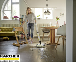 AKU podlahová myčka FC 7 Cordless Premium odstraňuje všechny druhy suchých a mokrých každodenních nečistot v jednom kroku bez předchozího vysávání. Tím ušetříte až polovinu času*. Navíc disponuje funkcí BOOST pro odolné nečistoty.