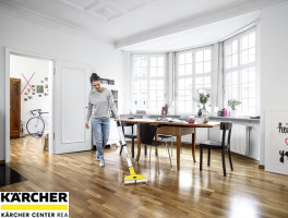- Automatické stírání vody z válců a rozsáhlá nabídka čisticích a údržbových prostředků - Vhodná pro všechny tvrdé podlahy – včetně parket, laminátu, kamene a plastu. Díky nízké zbytkové vlhkosti jsou podlahy po cca 2 minutách opět pochůzné.