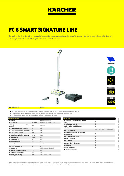 DomůDomácí technikaPodlahové mycí strojePodlahová myčka s odsáváním Kärcher FC 8 Smart Signature Line