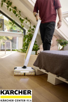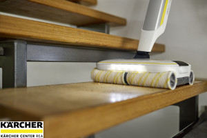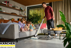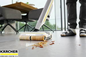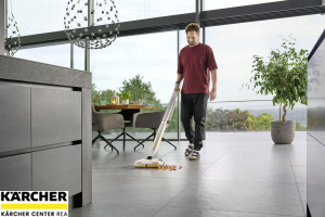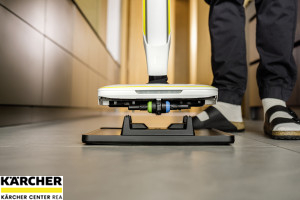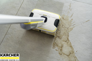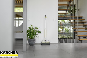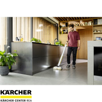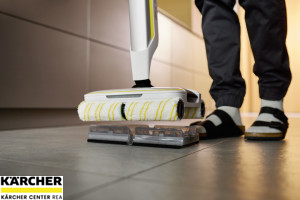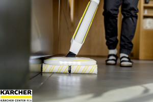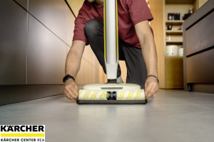** Čistič podlah Kärcher zkracuje dobu čištění až o 50 %, protože běžné nečistoty z domácnosti lze odstranit z tvrdých podlah v jediném kroku, aniž by bylo nutné před vytíráním vysávat.