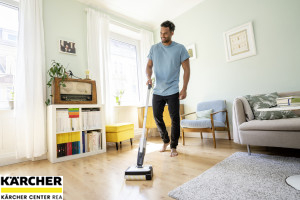 Podlahová myčka FC 2-4 zaujme svou samostatně stojící konstrukcí, nízkou hmotností pouhých 2,2 kg a automatickým zapínáním a vypínáním. K tomu stačí zatáhnout rukojeť čističe dozadu, aby se spustil a pohodlně odstranil suché i mokré každodenní nečistoty v jediném kroku. Maximální doba provozu na jedno nabití baterie je 20 minut, což odpovídá ploše úklidu 70 metrů čtverečních. Přídavná náhradní baterie umožňuje pokračovat v práci bez přerušení. Při spuštění se válec automaticky navlhčí vodou z nádržky na čerstvou vodu. Tím je zajištěno rovnoměrné a účinné čištění tvrdých podlah. Navíc čistí až k okrajům a díky integrovaným vlasovým filtrům snadno zachytí vlasy. Díky integrované hygienické nádrži na špinavou vodu je rovněž zamezeno kontaktu se špínou. Tu lze vyjmout a vyčistit přímo po použití přístroje. Vyměnitelná baterie Kärcher Battery Power 4 V, která je součástí balení, je kompatibilní se všemi zařízeními Kärcher Battery Power 4 V a lze jej nabít během okamžiku pomocí rychlonabíječky Duo.