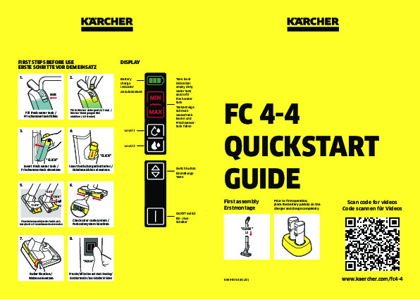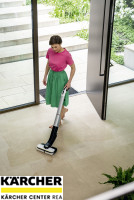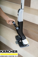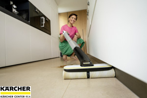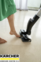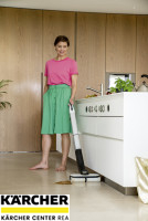 S podlahovou myčkou FC 4-4 již nemusíte před vytíráním vysávat a můžete odstranit suché i mokré každodenní nečistoty v jednom kroku. Díky dlouhé době provozu na jedno nabití baterie, která činí maximálně 30 minut, lze bez námahy vyčistit plochy o rozloze až 90 m2. Dodávaná rychlonabíječka Duo umožňuje nabíjení za pouhých 70 minut. Vizuální signál slouží ke sdělení, kdy je třeba doplnit nádrž na čerstvou vodu a vyprázdnit nádrž na špinavou vodu. Při spuštění se oba válce automaticky navlhčí vodou z nádrže na čerstvou vodu. Množství vody lze přizpůsobit povrchu podlahy pomocí dvou režimů čištění. FC 4-4 čistí i těžko přístupná místa a snadno zachytává vlasy. Přímému kontaktu se špínou zabraňuje integrovaná a hygienická nádrž na špinavou vodu, kterou lze po použití přístroje vyjmout a vyčistit. FC 4-4 stojí samostatně a díky odnímatelné rukojeti jej lze prostorově úsporně skladovat. Přístroj je vhodný pro všechny tvrdé podlahy. Výměnitelné baterie Kärcher Battery Power 4 V jsou kompatibilní se všemi zařízeními Kärcher Battery Power 4 V.