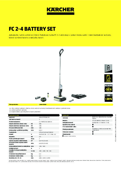 DomůDomácí technikaPodlahový mycí stroj Kärcher FC 2-4 BATTERY SET