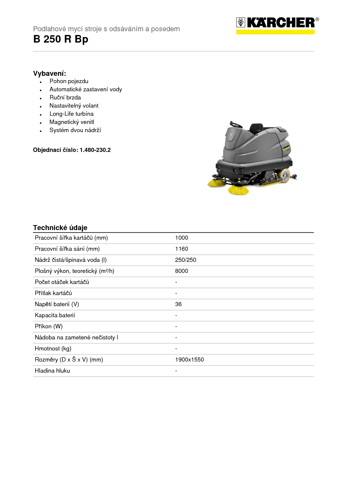 Podlahový mycí stroj Kärcher s odsáváním B 250 R Bp, konfigurovaný. Cena a konfigurace dle požadavků na vyžadání.