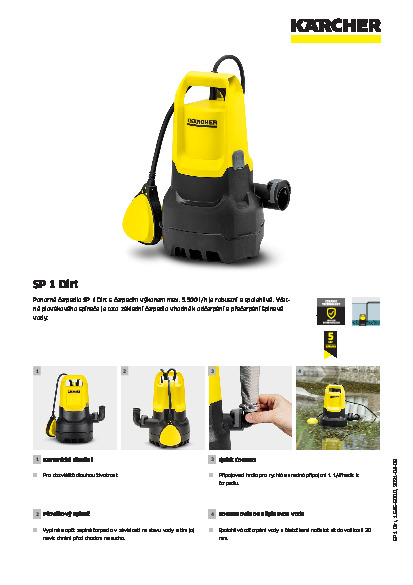 S maximálním čerpacím výkonem 5.500 l/h je Kärcher SP 1 Dirt perfektním základním modelem pro rychle odčerpání a přečerpání sudů na dešťovou vodu a zahradních jezírek. Spolehlivě čerpá čistou i znečištěnou vodu s částečkami nečistot o velikosti až 20 mm. Při silnějším znečištění lze dodatečně použít volitelně dostupný předfiltr, který ochrání oběhové kolo čerpadla před ucpáním např. větvemi. Těsnění, které je známé z oblasti Profi, a je vestavěno ve všech ponorných čerpadlech, zaručuje i zde velmi dlouhou životnost čerpadla. Záruční lhůta může být volitelně prodloužena až na 5 let. Ponorné čerpadlo na špinavou vodu je navíc vybaveno plovákovým spínačem, který přístroj zapne a vypne vždy v závislosti na stavu vody. Chrání jej tak před chodem na sucho. Čerpadlo může být díky možnosti připevnění plovákového spínače použito i při nízkém stavu vody - až do 25 mm výšky zbytkové vody. Taktéž praktické:. Připojovací hrdlo Quick-Connect umožňuje zvláště rychlé a bezproblémové připojení 1 1/4"-hadic.