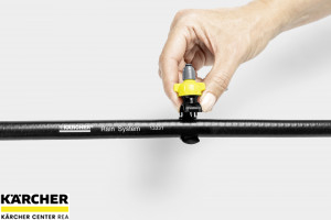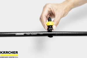 Postřikovací manžety jsou částí systému Kärcher Rain System™. Lze je připojit k hadici systému Kärcher Rain System™ na jakémkoliv místě. Montáž je velice rychlá, snadná a není k ní potřeba žádného nářadí. Za tímto účelem se vestavěná jehla v otevřené manžetě jednoduše nabodne na hadici. Manžeta se na hadici upevní tím, že se uzavře. Směřování úhlu postřiku lze nastavit horizontálně a vertikálně otočnou hlavou. Množství vody od 0 do 55 l/h lze podle potřeby úsporně nastavit přímo na trysce. Vysoce efektivní zavlažovací systém Kärcher Rain System™, který pracuje pod tlakem 4 bar a je vybaven 1/2“-hadicí s manžetami pro kapénkovou závlahu a postřik, spojuje výhody mikroodkapávání a běžného zavlažování. Systém Kärcher Rain System™ lze přizpůsobit téměř jakémukoliv typu zahrady a spolu se SensoTimerem, kterým se nastaví zavlažování podle potřeby, funguje perfektně.