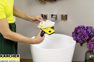Dvě prvotřídní utěrky z mikrovlákna, které jsou součástí sady, umožňují hubici účinně uvolnit a zachytit odolné nečistoty v koupelnách a kuchyních. Bez námahy lze odstranit i silné znečištění na varných deskách. Pohodlná a spolehlivá konstrukce s háčkem a smyčkou bezpečně upevní utěrku k ruční hubici a znamená, že utěrku lze rychle vyměnit, aniž by musela přijít do kontaktu se špínou.