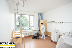 Lehký, tichý a agilní: podlahový mycí stroj BD 38/12 C s kotoučovou hlavou je vybaven rychlonabíjecí, vysoce výkonnou lithium-iontovou baterií a režimem eco!efficiency.