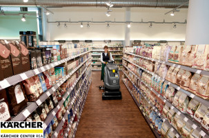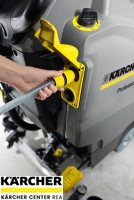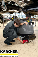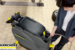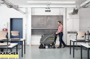 Podlahový mycí stroj Kärcher s odsáváním a plynulým pohonem pojezdu (dopředu a dozadu). S kartáčovou hlavou a diskovým kartáčem, pracovní šířkou 51 cm, bezúdržbovou baterií (24 V, 105 Ah) a systémem klíčů KIK pro ochranu před chybnou obsluhou. Kromě toho: stupeň eco!efficiency pro delší dobu běhu baterií, funkcí Auto-Fill pro pohodlné naplnění nádrže na vodu