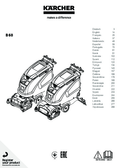 DomůPodlahové mycí strojePro chodící obsluhu - bateriovéPodlahový mycí stroj s odsáváním Kärcher B 60 W Bp+D65+DOSE+Auto-fill+Rins+V900