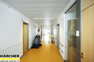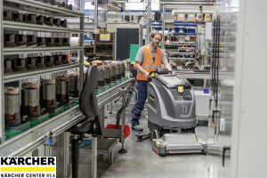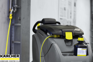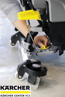 Ručně vedený podlahový mycí stroj s odsáváním (60 l) pro plochy 1.000 až 2.500 m² přesvědčí pohonem pojezdu, systémem KIK, vyplachováním nádrže, funkcí Auto-Fill, s válcovou kartáčovou hlavou a stěrkou ve tvaru V.
