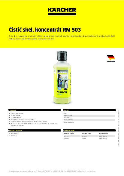 DomůDomácí technikaČistící prostředkyPro čištění skel a okenKärcher Čistič skel – koncentrát RM 503 (0,5 l)