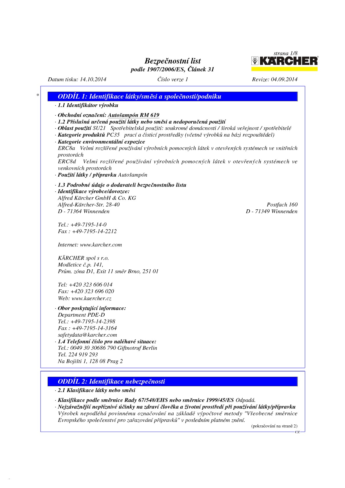 - EUH210 Na vyžádání je k dispozici bezpečnostní list.