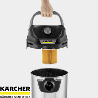 Výkon se snoubí s energetickou účinností: Vysavač na mokré/suché vysávání KWD 3 S V-15/4/20 zaujme nízkou spotřebou 1000 W a černou hlavou zařízení. Zařízení, sací hadice a podlahová hubice jsou optimálně sladěny pro vynikající výsledky čištění v případě suchých, mokrých, jemných nebo hrubých nečistot. Přístroj zaujme kompaktním a atraktivním designem, 15litrovou nádobou z nerezové oceli odolnou proti nárazům a 4metrovým kabelem, stejně jako 2metrovou sací hadicí s odnímatelnou rukojetí, kartušovým filtrem a 5 fleecovými filtračními sáčky. 1dílný kartušový filtr umožňuje pohodlné vysávání suchých i mokrých nečistot, bez výměny filtru. Kartušový filtr lze bezpečně nasadit na filtrační koš a také jej opět vyjmout otáčením ve směru hodinových ručiček. Další vlastnosti: prostorově úsporné a bezpečné uložení sací hadice u hlavy přístroje, praktická funkce foukání a odkládací plocha na hlavě přístroje pro bezpečné uložení nářadí a drobných předmětů. Parkovací poloha na nárazníku také umožňuje rychlé a pohodlné uložení příslušenství.