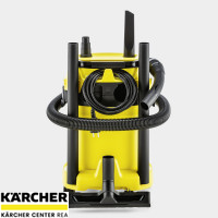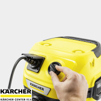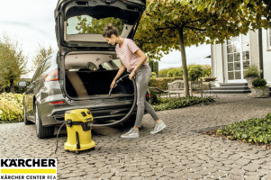 Víceúčelový vysavač WD 3 P V-17/4/20 je výkonný a energeticky účinný se spotřebou pouze 1 000 W. Stroj, sací hadice a podlahová hubice Clips jsou dokonale sladěny – pro nejlepší výsledky čištění na suchu, mokré, jemné nebo hrubé nečistoty. Vysavač na mokré a suché vysávání zaujme kompaktním designem a robustní plastovou nádobou o objemu 17 l, 4m kabelem, 2m sací hadicí a fleecovým filtračním sáčkem. Díky jednodílnému patronovému filtru je možné vysávat mokré i suché nečistoty bez výměny filtru. Prostřednictvím integrované elektrické zásuvky s automatickým vypínačem lze připojit elektrické nářadí, jako jsou pily nebo brusky, a přímo odsát vznikající nečistoty. Funkce ofukování je užitečná pro čištění těžko přístupných míst. Hadice se ukládá zavěšením na hlavu stroje, čímž se šetří místo. Kabel lze uložit na kabelový hák, trubky a podlahové hubice u nárazníku. Uzamykací systém "Pull & Push" umožňuje jednoduché otevírání a zavírání nádoby. Rukojeť vysavače lze sejmout a příslušenství připojit přímo k sací hadici