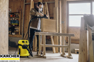Víceúčelový vysavač WD 3 P V-17/4/20 zaujme 17 l plastovou nádobou, 4 m kabelem, 2 m sací hadicí, jednodílným kartušovým filtrem a zásuvkou pro elektrické nářadí. Ideální pro hobby a dílnu.