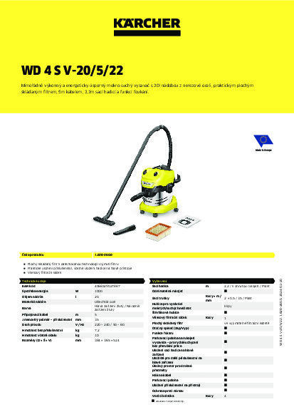 DomůVysavačeHobby (pro domácnost)Pro mokro-suché vysáváníMultifunkční vysavač Kärcher WD 4 S V-20/5/22