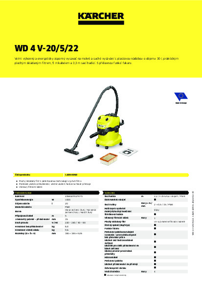 DomůVysavačeHobby (pro domácnost)Pro mokro-suché vysáváníMultifunkční vysavač Kärcher WD 4 V-20/5/22