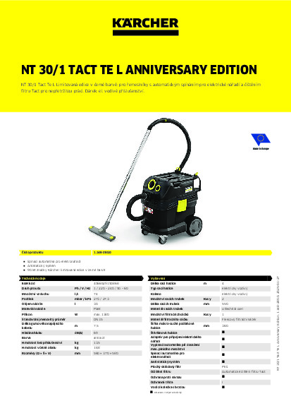 DomůVysavačePro mokro-suché vysáváníKärcher mokro-suchý vysavač NT 30/1 Tact Te L Anniversary Edition