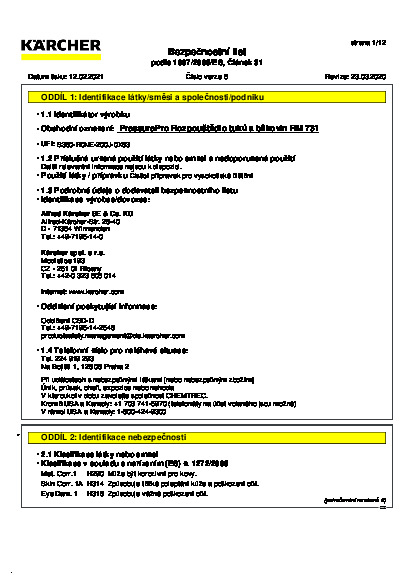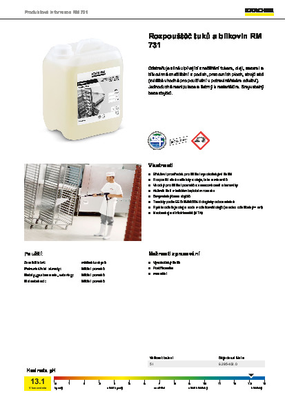 DomůČistící prostředkyPro vysokotlaké čistící strojePro potravinářskou oblastRozpouštěč tuků a bílkovin Kärcher RM 731, 5 l