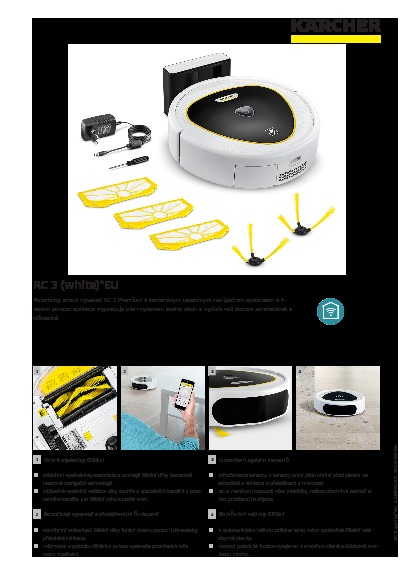- Komfortní režimy čištění - V automatickém režimu zvládne tento robot spolehlivé čištění celé obytné plochy. Pomocí praktické funkce vysaje RC 3 Premium cíleně a důkladně zvolenou plochu.