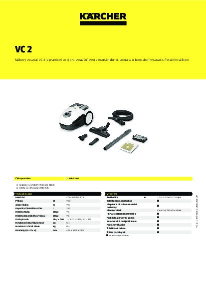 DomůVysavačeHobby (pro domácnost)Pro suché vysáváníKärcher Vysavač VC 2