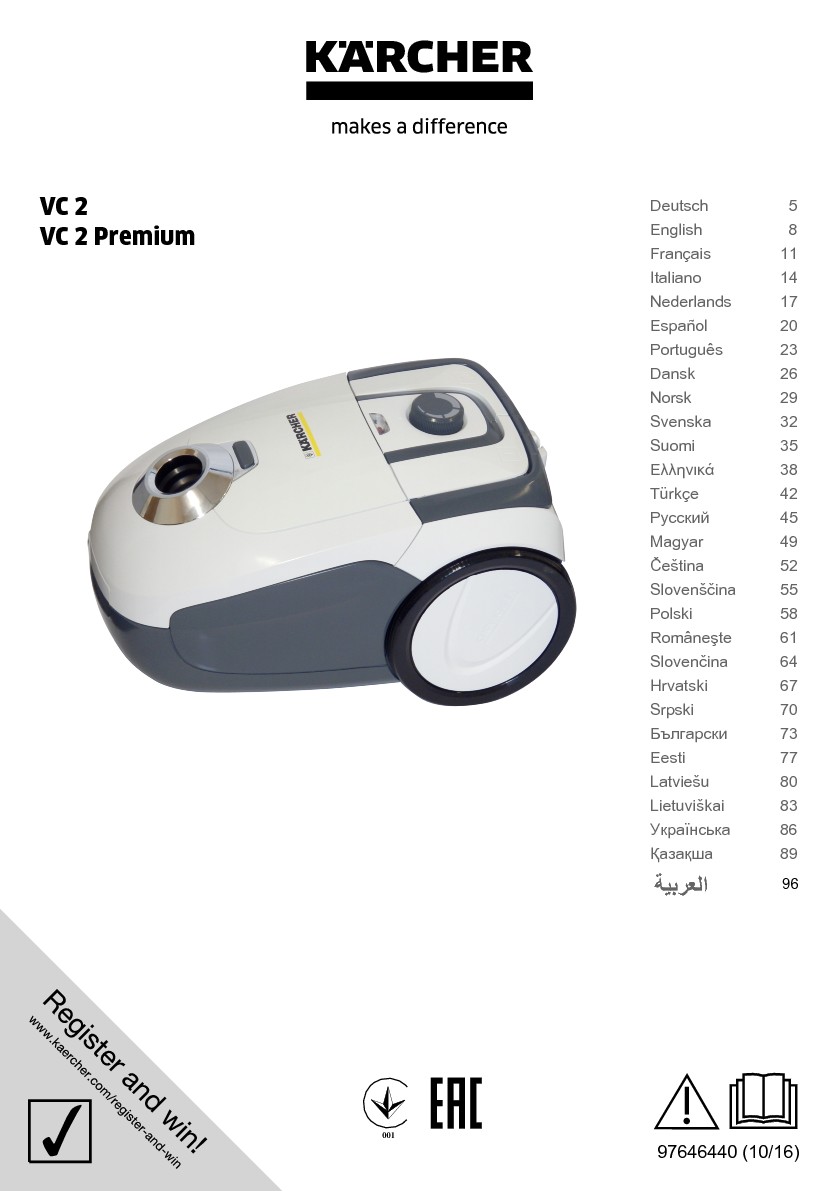 Sáčkový vysavač Kärcher VC 2 přesvědčí hygienickým a komfortním filtračním systémem. Plné sáčky lze likvidovat zcela pohodlně bez kontaktu s nečistotami. Kompaktní vysavač je zvlášť vhodný pro byty a malé domy. Ideální pro důkladné čištění tvrdých podlah a koberců, nebo díky štěrbinové hubici a štětci na nábytek také pro čištění úzkých prostor a citlivých povrchů. Další výhodou vysavače VC 2 je jeho hygienický HEPA filtr, který spolehlivě zachytí jemné nečistoty jako pyly nebo jiné částečky vyvolávající alergii. O doplňkový komfort při práci se starají integrovaná přihrádka příslušenství, nastavení výkonu na vysavači a praktická parkovací poloha.