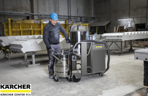 Základní model Super třídy průmyslových vysavačů: IVS 100/40 s přímo poháněným 4 kW dmychadlem s bočním kanálem, růžicovým filtrem třídy M a horizontálním oklepáváním filtru.