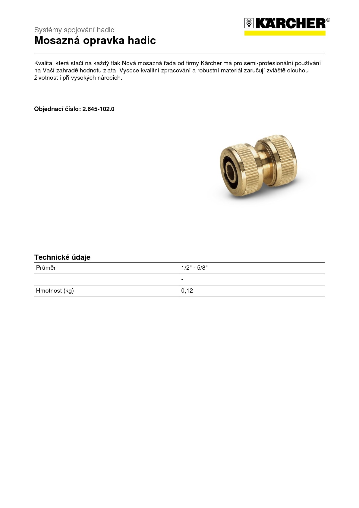 - ke spojení hadic s vnitřním průměrem 1/2" a 5/8" (2.645-102.0) 3/4" (2.645-103.0)