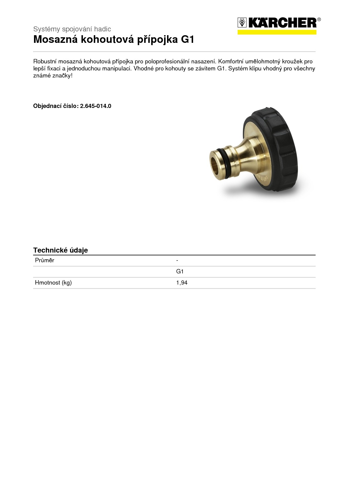 Kärcher Mosazná přípojka na kohoutek G1