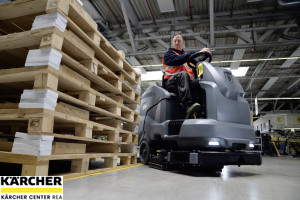 Bateriový podlahový mycí stroje B 200 R + R 85. S 200 litrovou nádrží, efektivnější technologii válců, pracovní šířce 85 cm a systému FACT pro regulaci rychlosti kartáče.