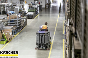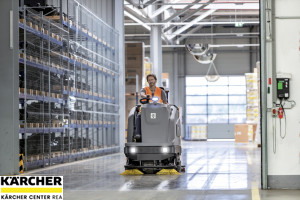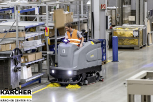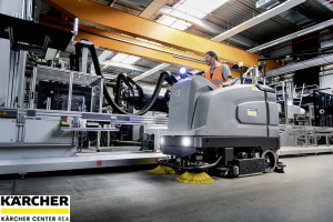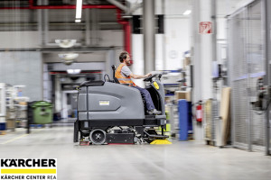 Podlahový mycí stroj s odsáváním s posedem B 260 RI Bp se může pochlubit v rámci sériového vybavení dávkováním čisticích prostředků šetrným ke zdrojům Dose, funkcí automatického plnění Auto-Fill pro úsporu času, systémem ručního vyplachování nádrže, automatickou optimalizací nanášení vody v zatáčkách i pracovním světlem. Robustní stroj s masivní ochranou proti nárazu a košem na hrubé nečistoty z ušlechtilé oceli je konstruován speciálně pro nejtvrdší podmínky v průmyslovém prostředí a přesvědčí díky oběma neopotřebitelným Ec turbinám a nově vyvinuté sací liště s optimalizovaným průtokem vzduchu vynikajícím výsledkem odsávání. Rychlost pojezdu až 10 km/h, velké 260 litrové nádrže a vylepšená válcová kotoučová hlava o šířce 100 cm umožňují vysoké plošné výkony. Při příliš rychlé jízdě v zatáčce se sensor úhlu natočení kol postará o maximální bezpečnost a zbrzdí stroj. Navíc lze doobjednat postranní mycí kotouč pro čištění ke krajům a zvětšení pracovní šířky.