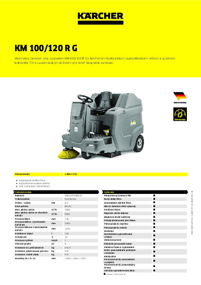 - Vysoká produktivita - Vynikající výsledek zametání díky výkyvnému systému zametacího válce Velký objem nádrže na nečistoty (120 l) pro dlouhé pracovní intervaly bez přerušení. Robustní konstrukce a osvědčené komponenty pro minimální výpadky stroje.